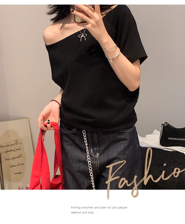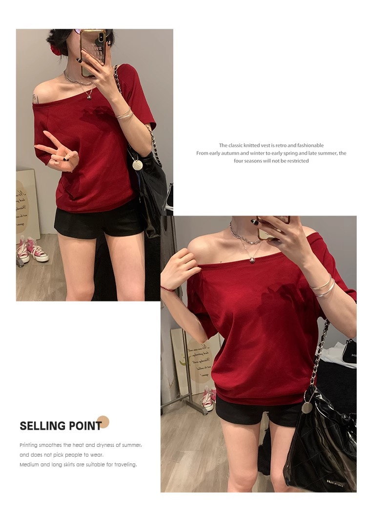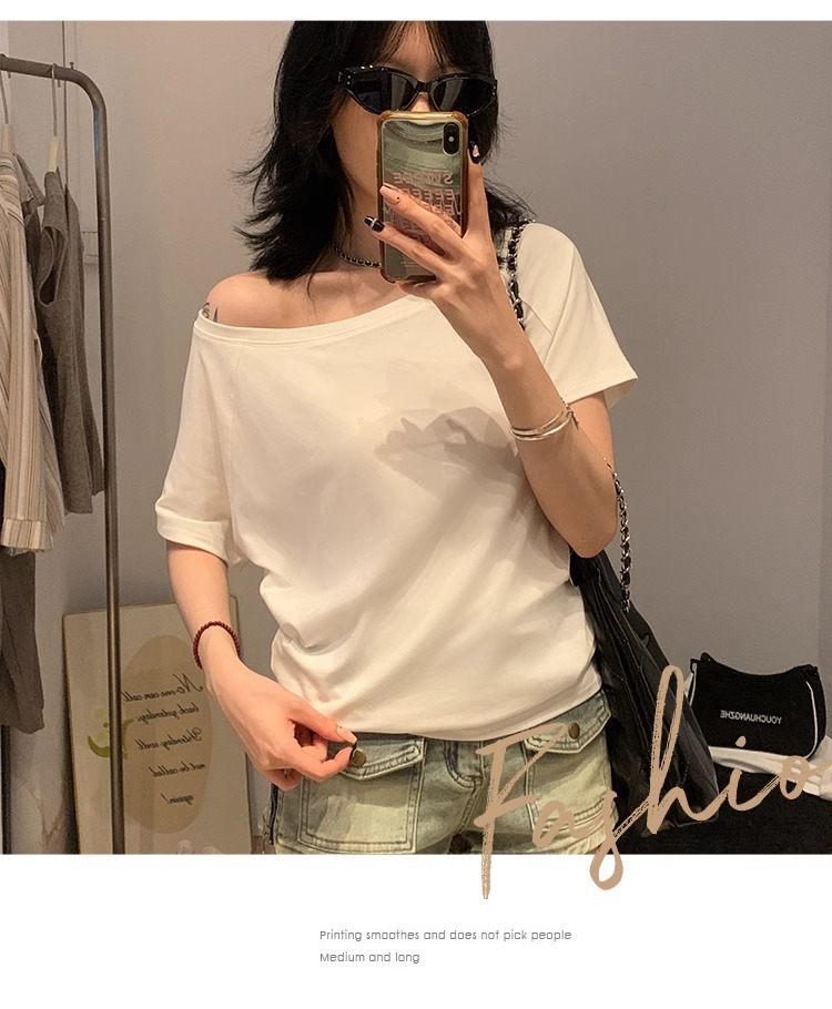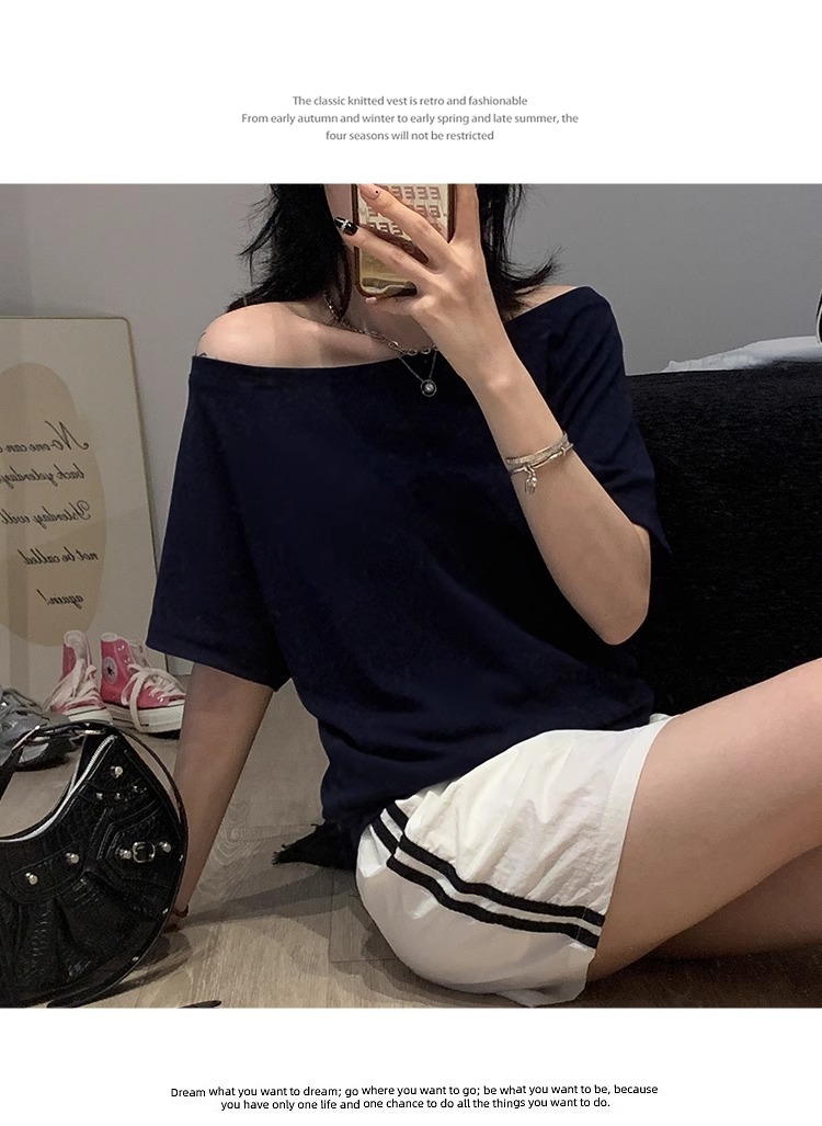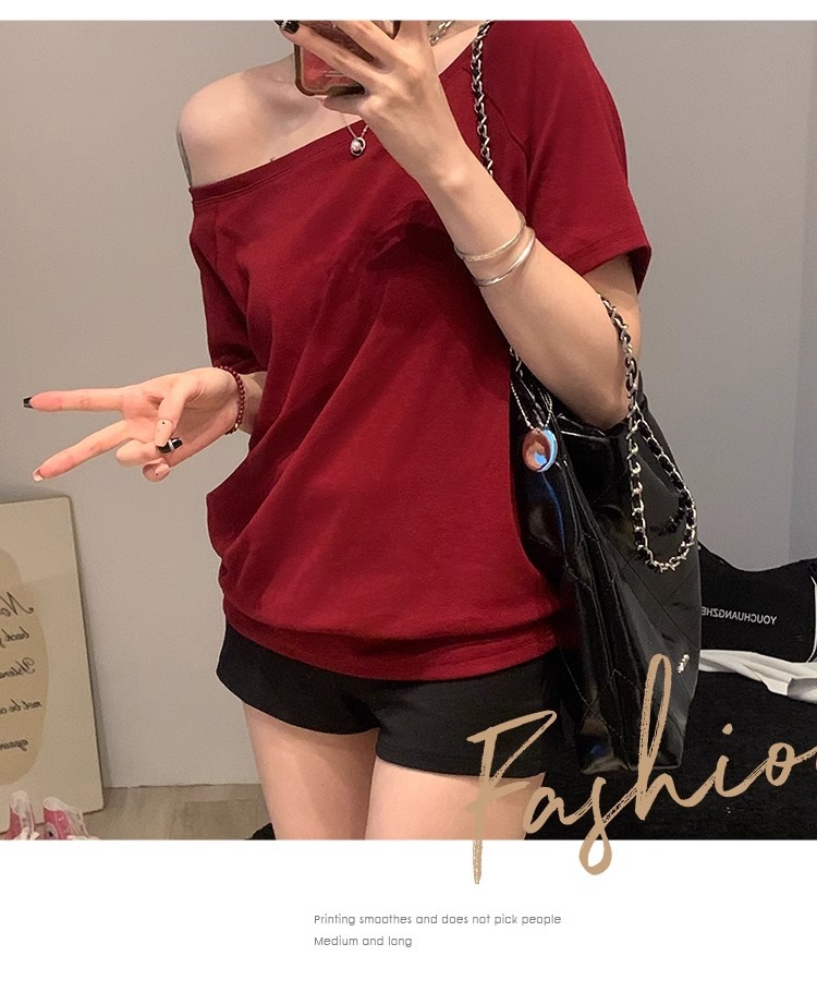 Off-the-Shoulder Loose Solid T-Shirt