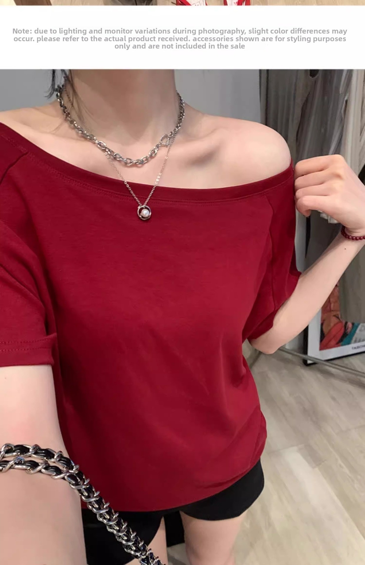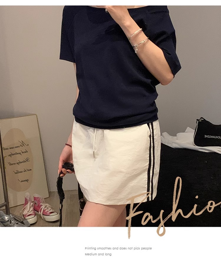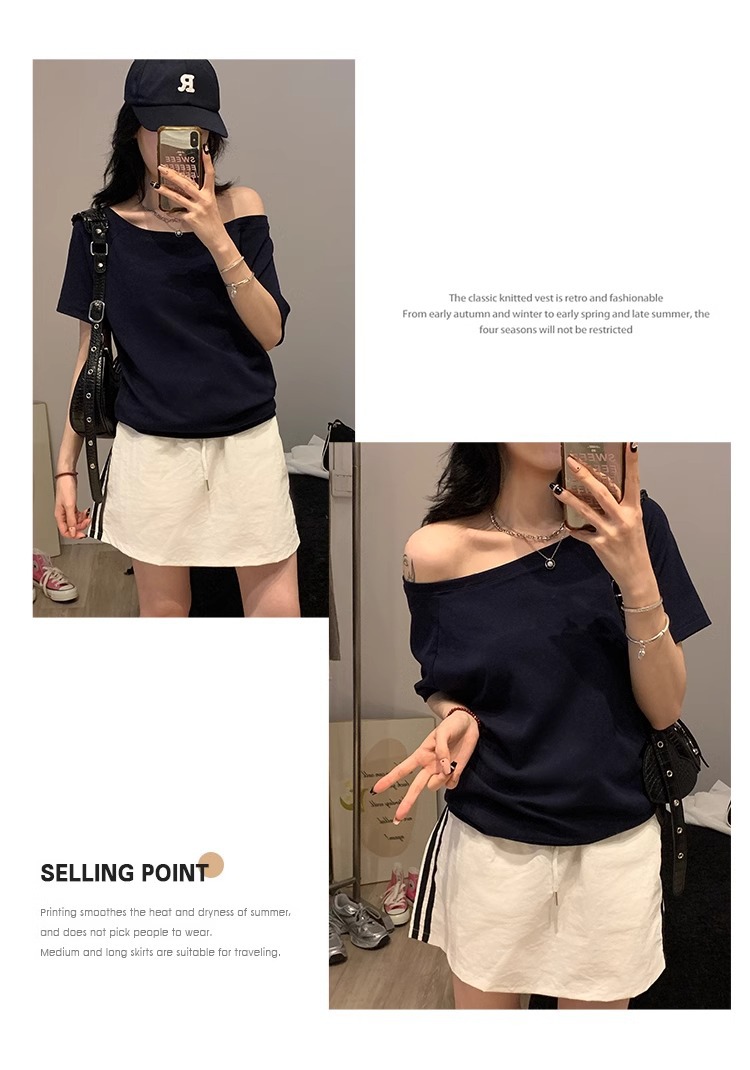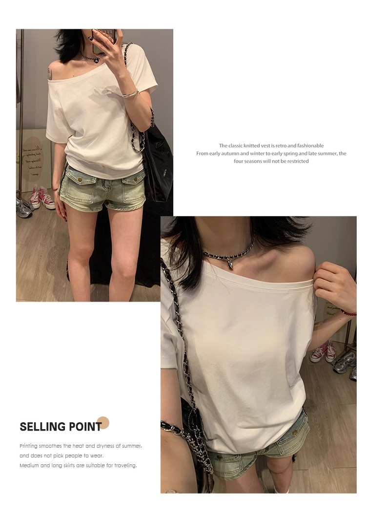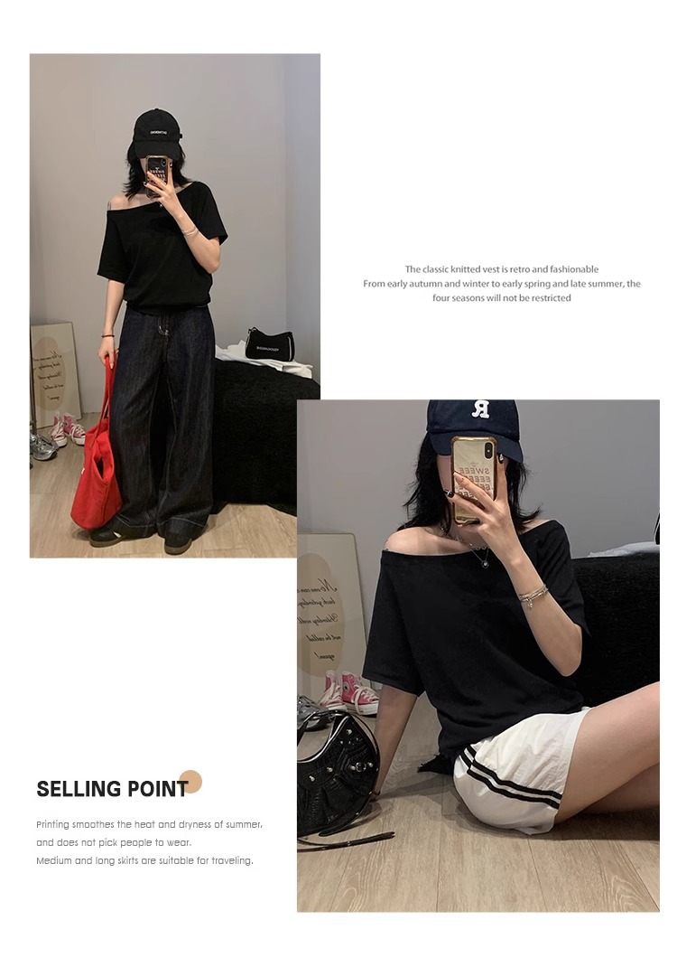 Off-the-Shoulder Loose Solid T-Shirt