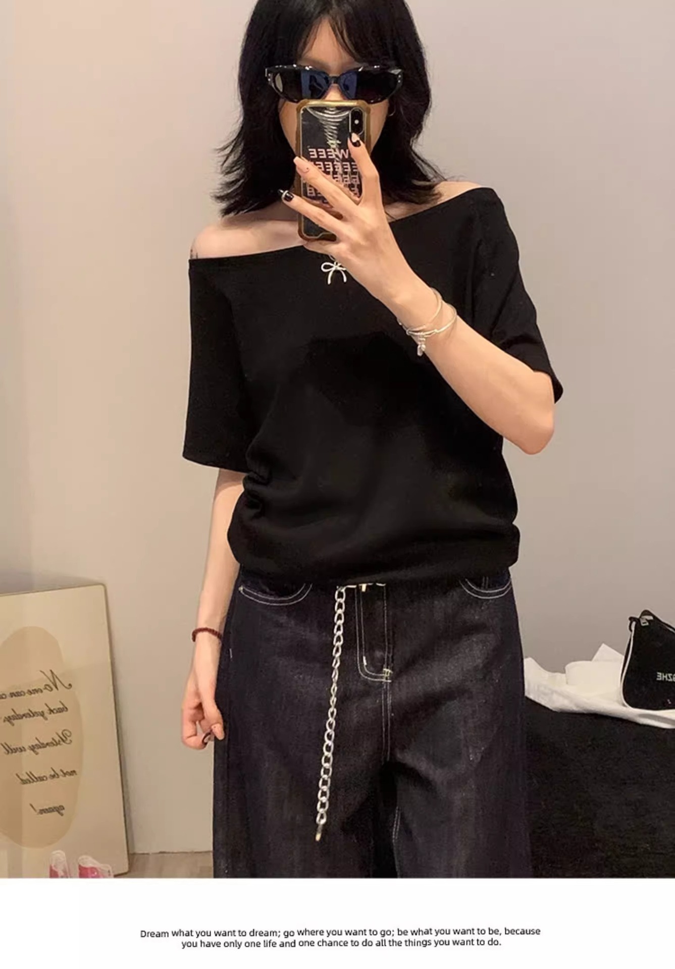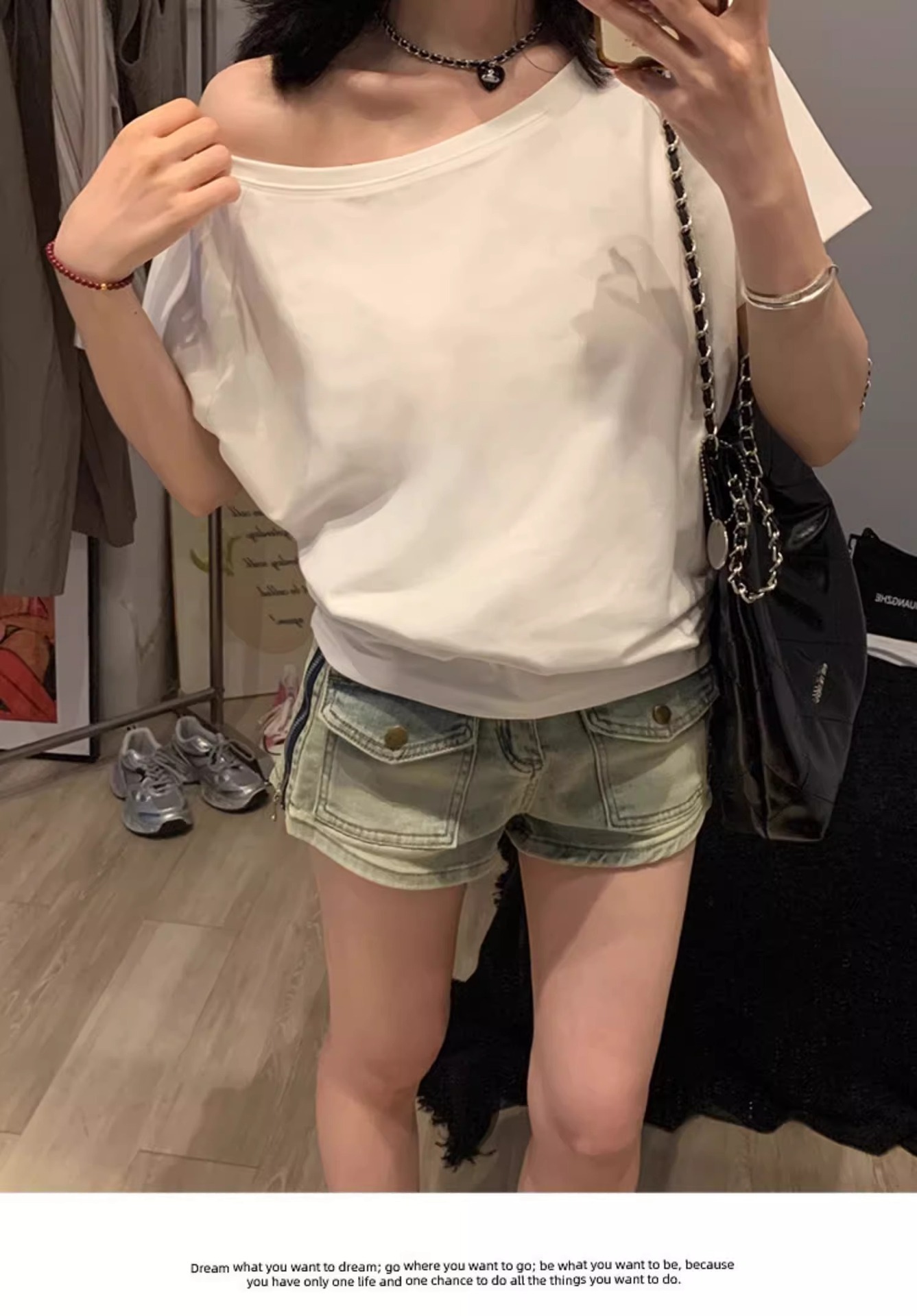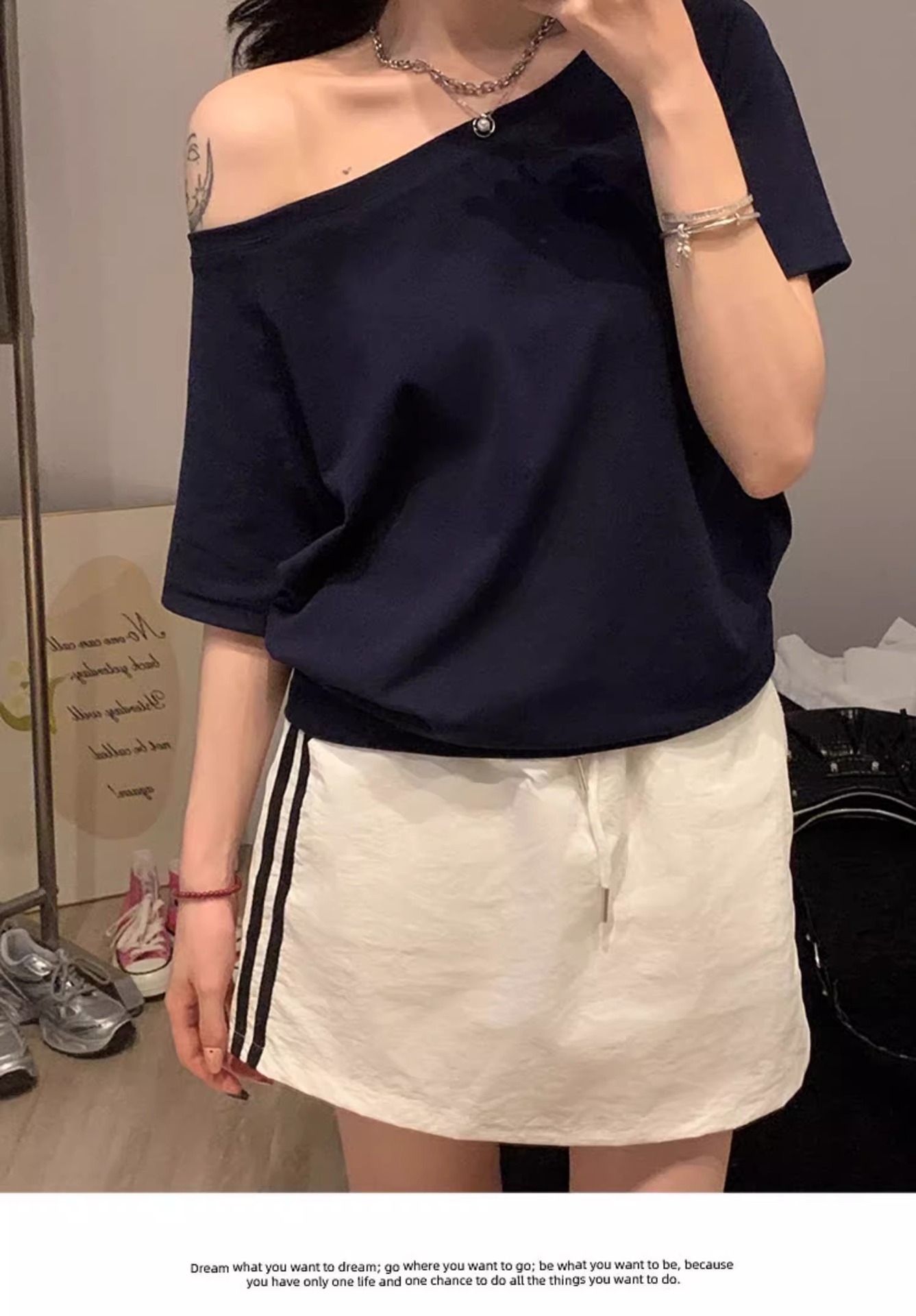 Trendy one-shoulder neckline for modern style