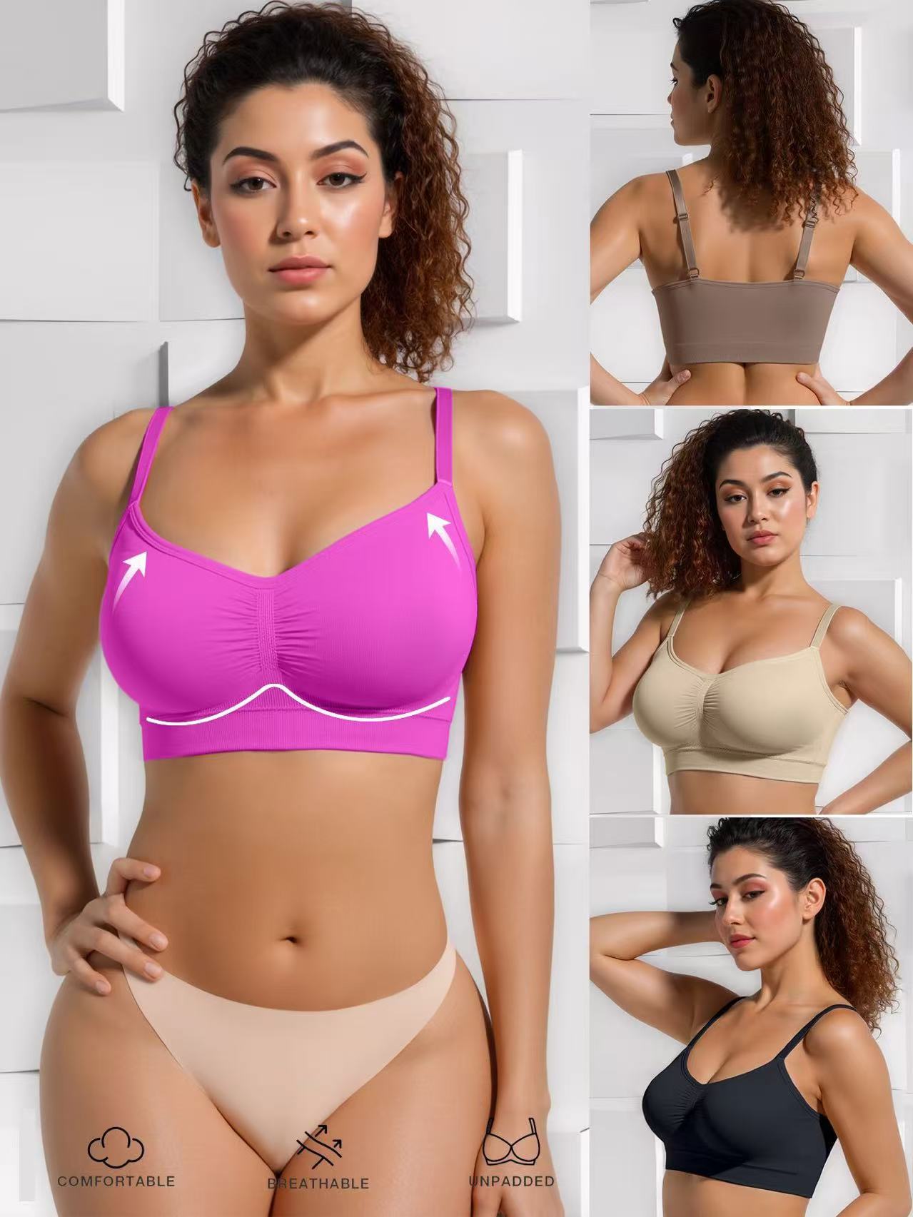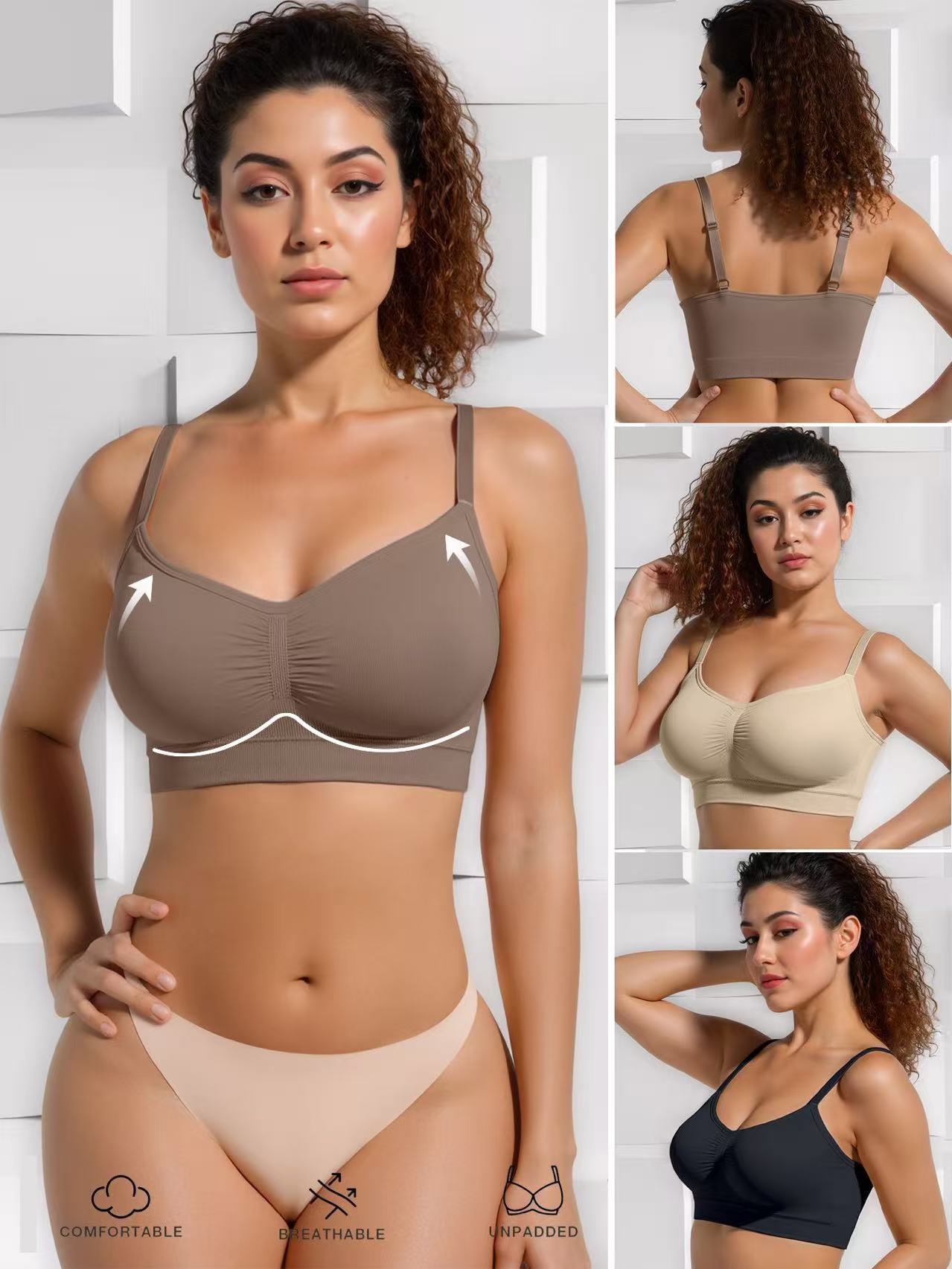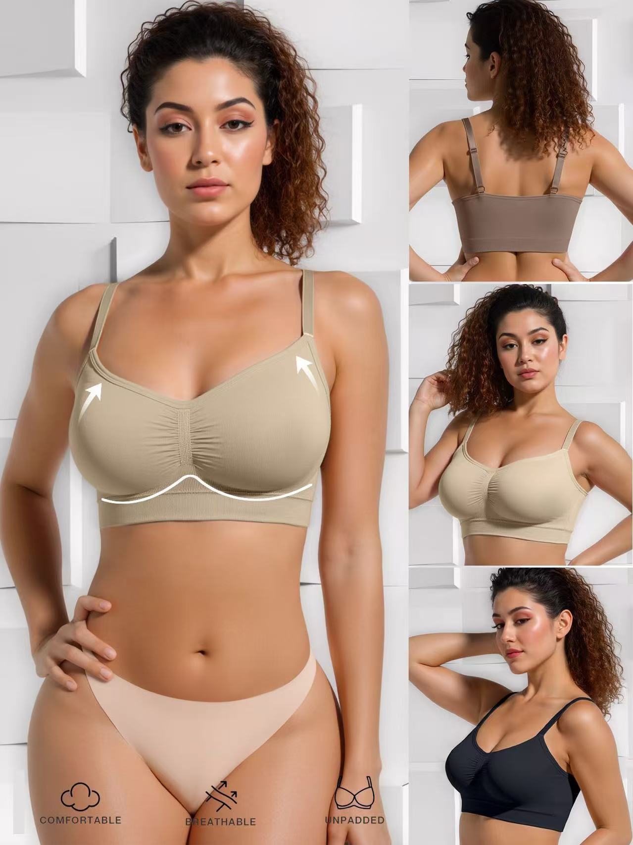 Seamless Construction: Smooth, no-show appearance under clothing with edge-free comfort