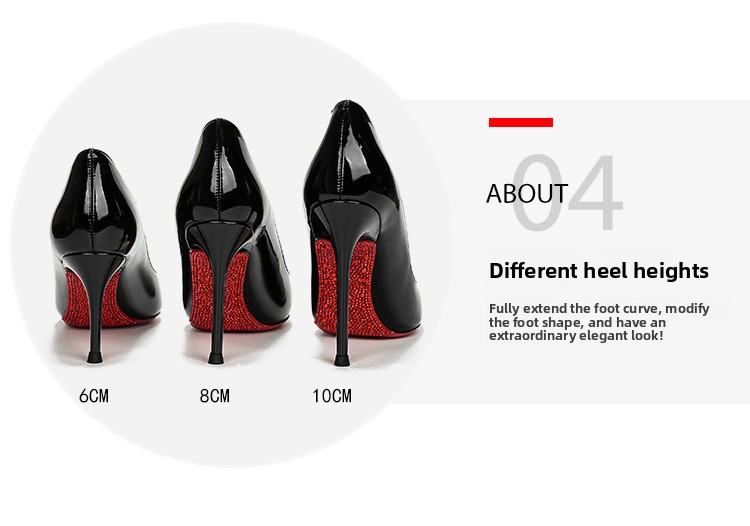 Stiletto heel: Height options (6cm/8cm/10cm) for versatile styling
